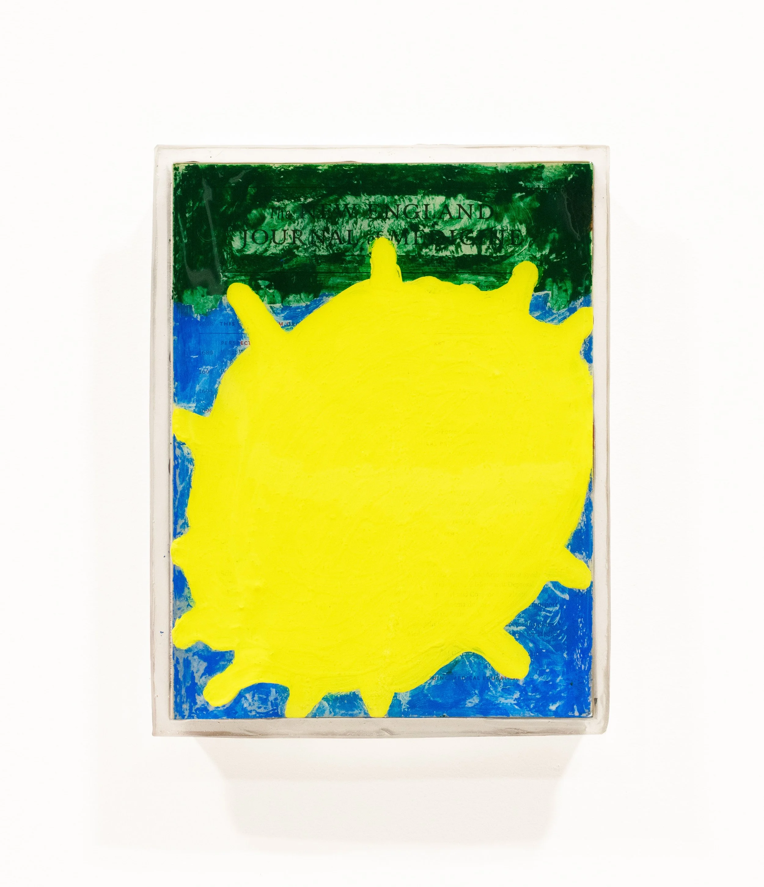 Paper Collage, Oil, Resin on NEJM on Metal Frame