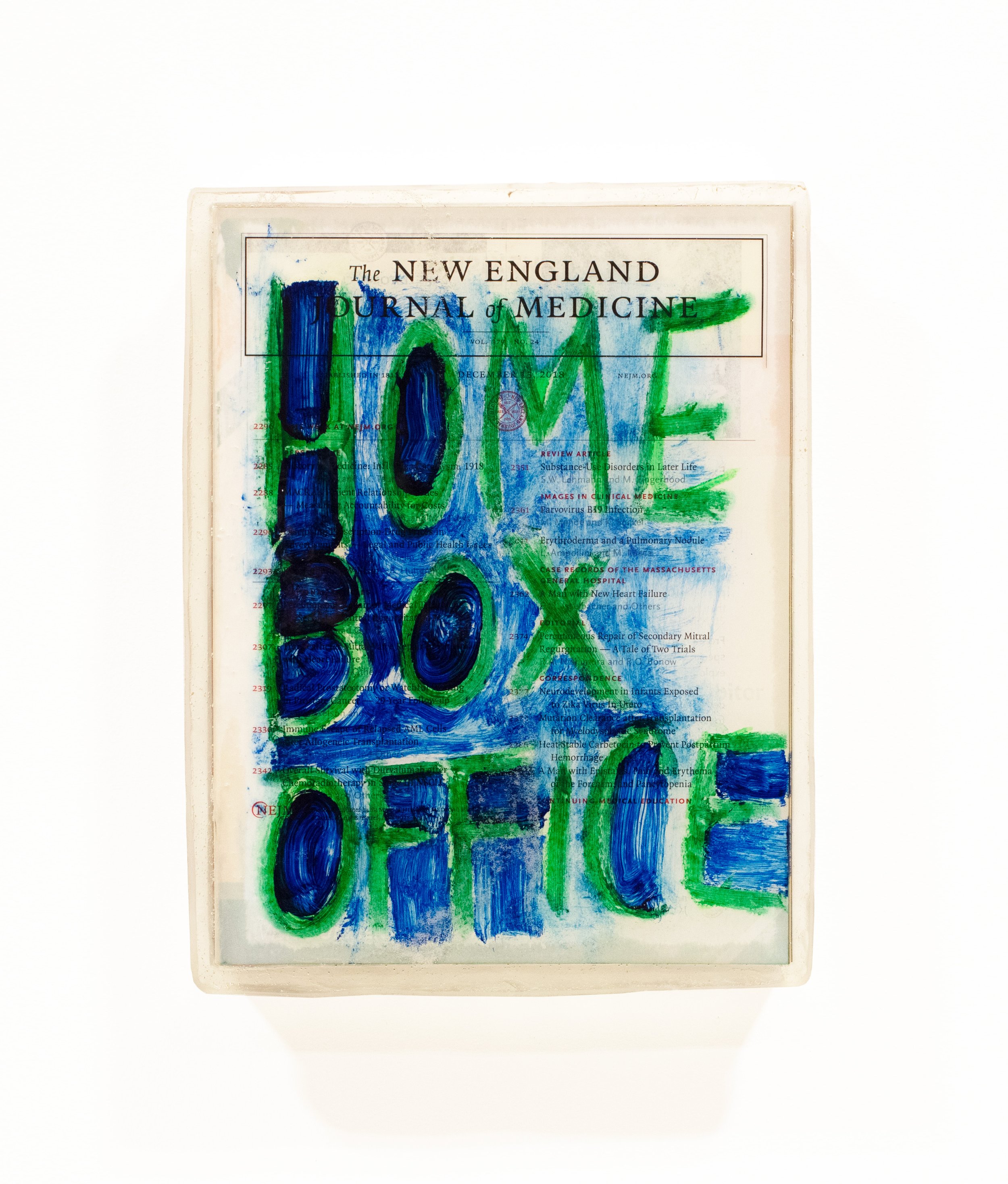 Oil, Paper Collage, Inkjet on Canvas, Resin on NEJM on Metal Frame